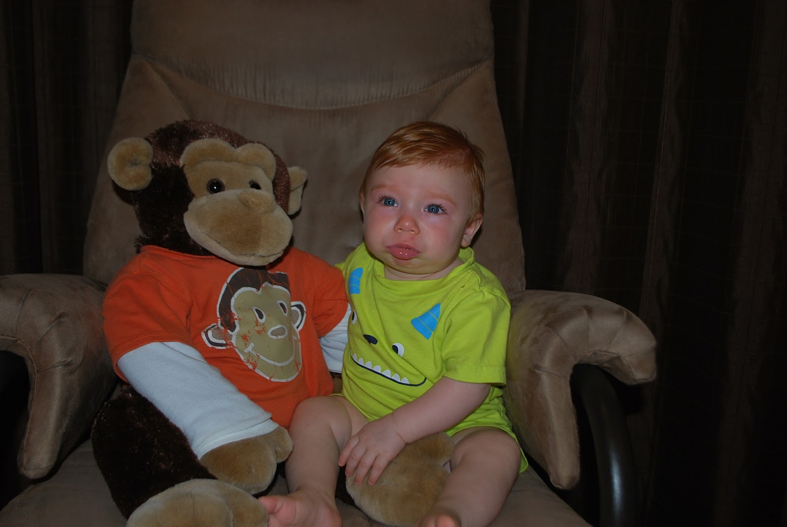 You love your brother and have started grabbing for his toys. He is so good to you and always shares. You are a lucky little boy, Daniel says he can't wait to play with you and keeps track of how old you are. I can't believe in 4 months you will be 1!!!!!!!!!!!!!!